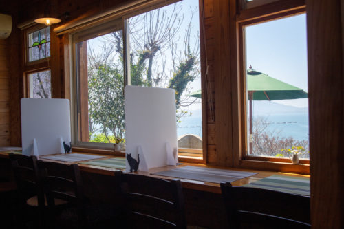 眼下に凪いだ海と野釜島が望める素敵な席です。