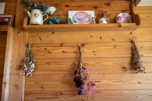 ドライフラワーのスモッグがカントリーなお店の雰囲気にピッタリ!