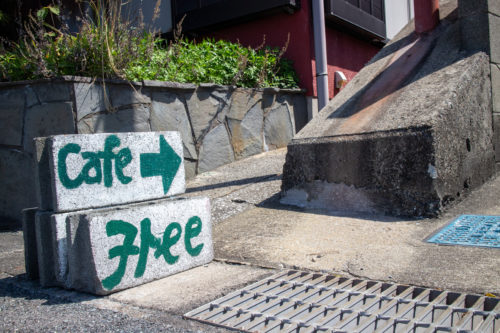 マップを見ながらカフェの場所は少し分かりづらいのかな…と思いつつ向かったところ、手作りの温かみ溢れる看板が所々に。