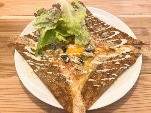 今回はガレットセットで、ニース風ガレット(トマト・オリーブ・ツナ・卵・チーズ)を選びました。
