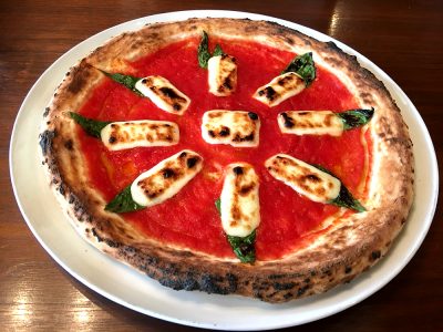 「カフェ河野」のマルゲリータは、均一に配置されたモッツァレラチーズとバジルの葉がとても綺麗!
