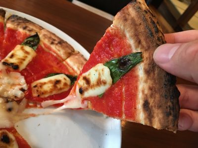 のびーるチーズが堪らない!濃厚なトマトソースと絡まり、ナポリピザの最高の味わいを引き立てます。