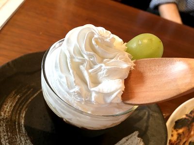 しかも、コーヒーゼリーはゼラチンではなく、なんとデンプンで作られたもの。自然素材のデンプンでゼリーを作るという高度な技で、固めのゼリーとはまた違う、とろみのあるコーヒーゼリーに仕上がっています。これも新感覚なスイーツですね!こんな口当たりは私も初めてです!