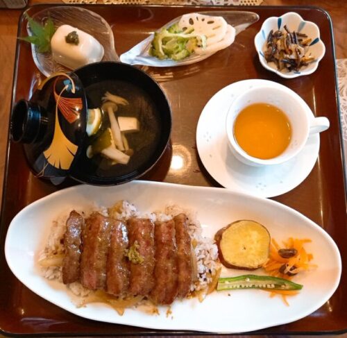 私はお店の方おススメのステーキ膳(2300円)を頼みましたが、焼き加減も好みに応じてくれます。