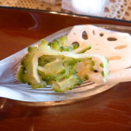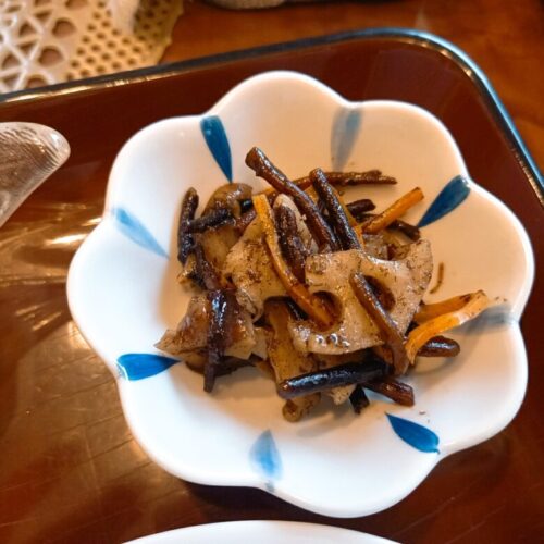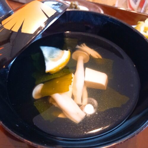 無農薬のカボス入りおすましと酢の物で口をさっぱりさせて、小鉢で箸休め。