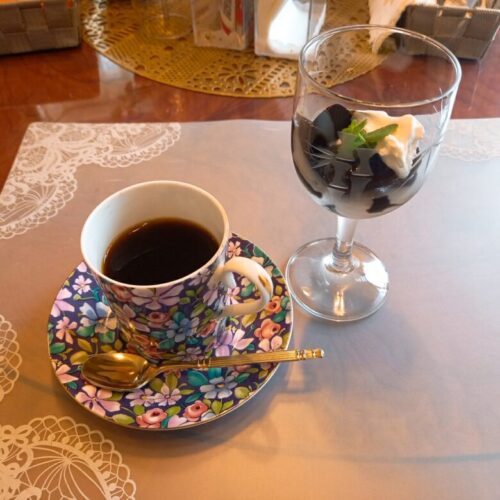 コーヒーは食器棚にあるカップ&ソーサーから好きなものを選べます。