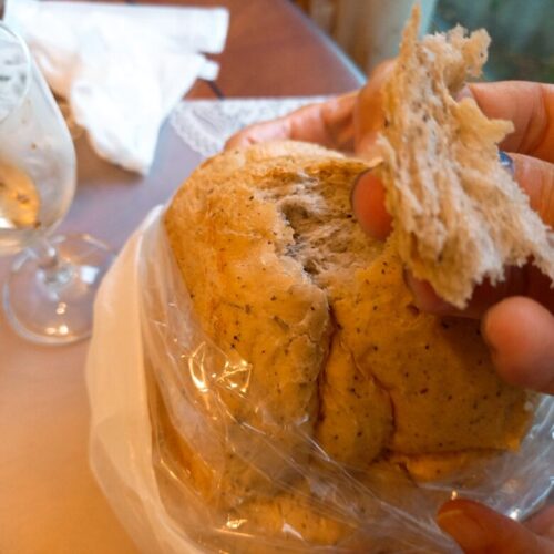 出来立て美味しそう…と見ていたら「出来立てをちぎって食べるとたまらんですよ!」と言われたので一むしり。