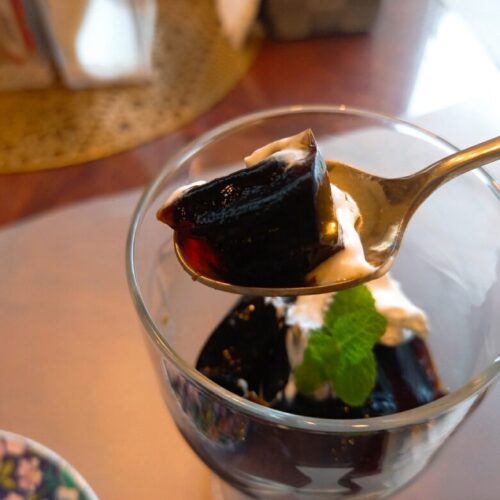 この日のデザートはキャラメル風味のゼリーでさっぱりと。