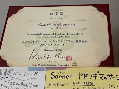 栄養学や調理法についても学ぶオプティマルクッキングアカデミー上級講座も修了され、今も勉強を重ねられています。