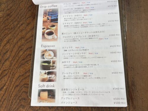 ドリンクは、ドリップ珈琲、ラテ、ソフトドリンク、となります。