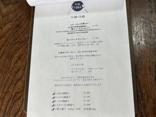 たまたまだったのですが、この日はカレーの日で、「calmest coffee shop」 などでも提供されている、THE 1984さんのカレーも食べられました。