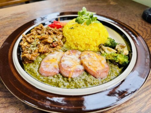 見た目も素晴らしいこちら。特にホウレンソウと小松菜のカレーはグリーンのお味が濃厚で、いい意味でカレーという事を忘れてしまう程の弾ける美味しさ。無水チキンカレーもほろほろ具合がやみつきになるお味でした。