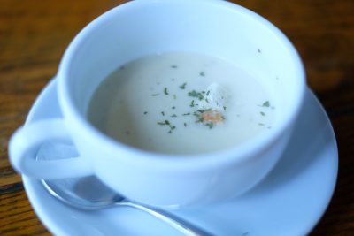 セットの濃厚スープとシャキシャキお野菜をいただいて・・・。