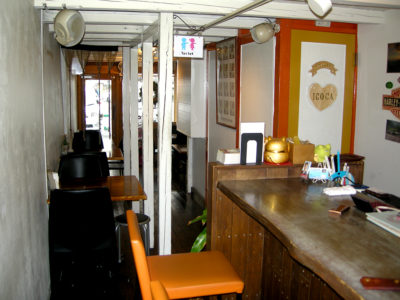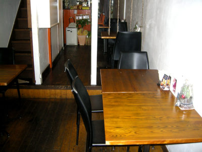 長屋のように幅は狭くて奥に長く、手前がテーブル席、奥がカウンター席というレイアウト。2階にも団体向けの席があります。