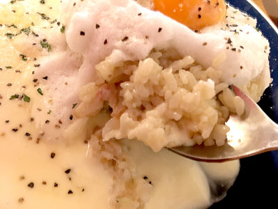 カルボナーラソースがバターライスに絡まって、とても濃厚!