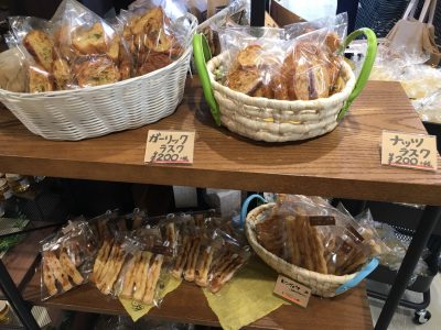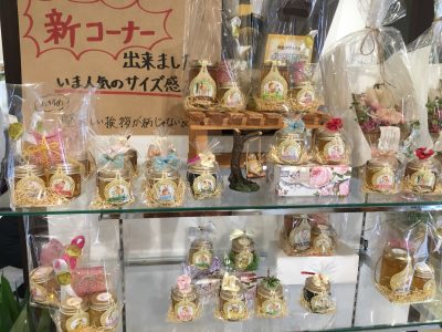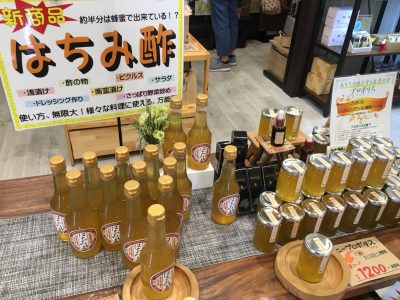 砂糖を使わずに、はちみつで作った手作りのお菓子。そのほか、寒天ゼリーや化粧品、ジャムやドレッシングなど、はちみつ関連の商品がたくさん並んでいて、見ているだけでもわくわくします。