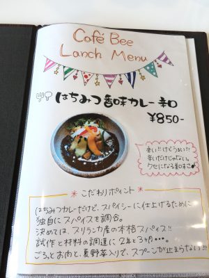 メニューを開いてまず目に入るのは、スリランカ産のスパイスを使って、2年3カ月もの歳月を費やして開発されたはちみつカレー。