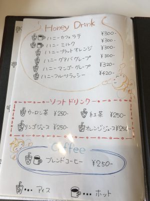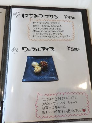 はちみつプリンやワッフルなどのスイーツ、ドリンク類も楽しめます。