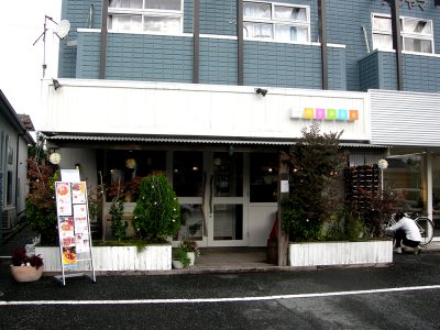 外観は白く爽やかなイメージ。以前は別のカフェが入っていたそう。。