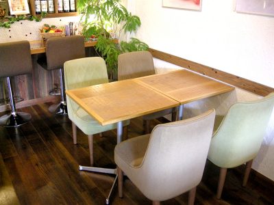 店内はテーブル席がスタイリッシュ。カウンター席もあります。