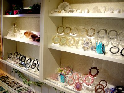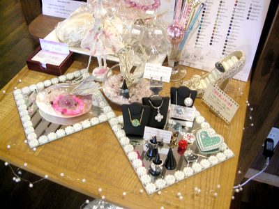 まるでジュエリーショップにいるかのような素晴らしいパワーストーンを使った装飾品の数々。
