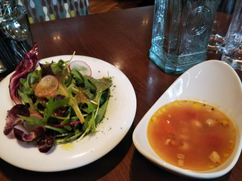 カレーセットには、サラダとスープに加えて、