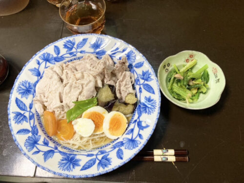甘辛い肉味噌の風味が口いっぱいにひろがる「揚げナス」はさっぱりとしたシソ風味が追いかけてきて絶妙の美味しさ。
