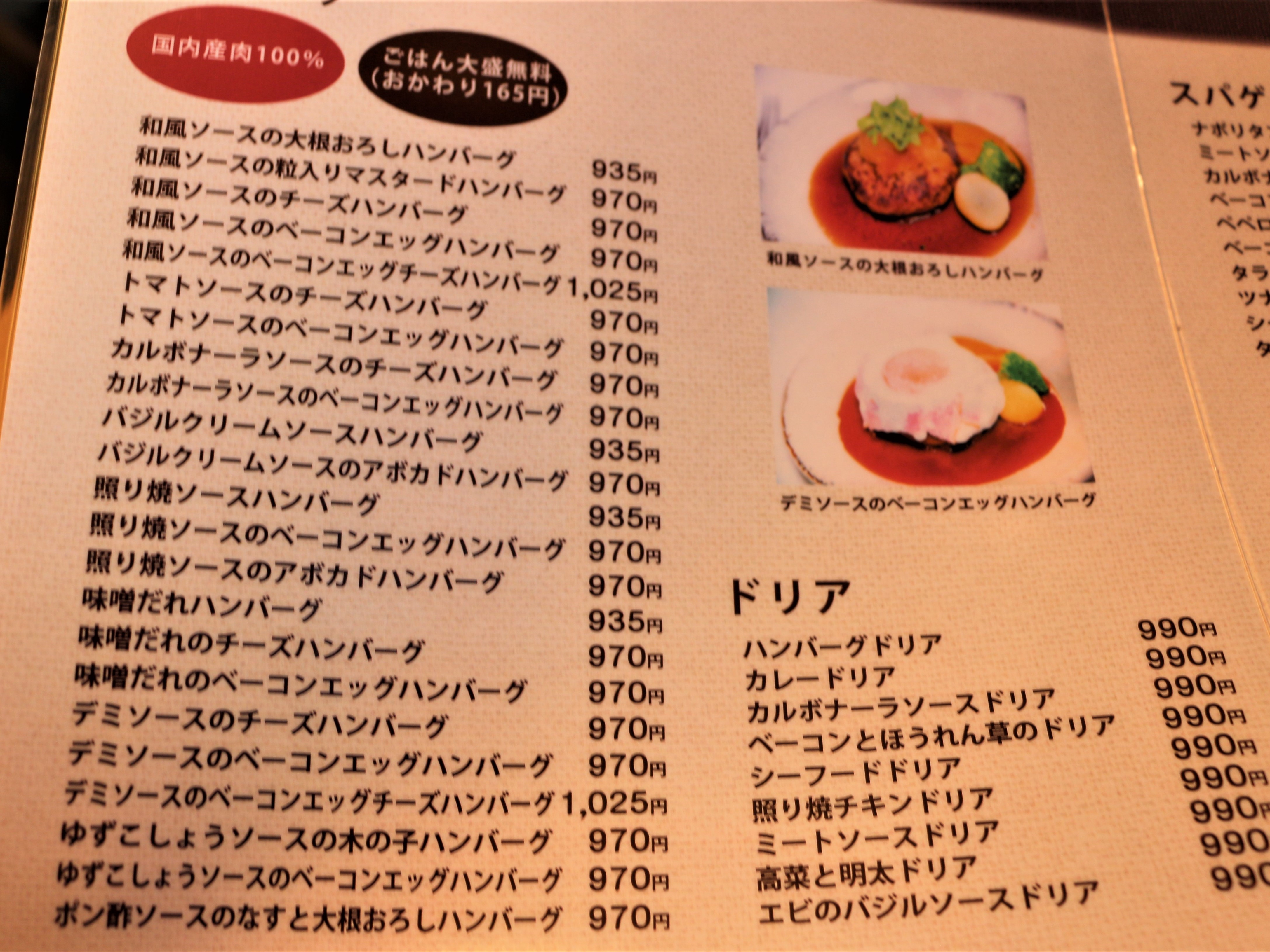 パフェの種類が豊富と聞いていましたが、お食事メニューもとっても豊富!ハンバーグだけでこんなにあるって凄いですね。