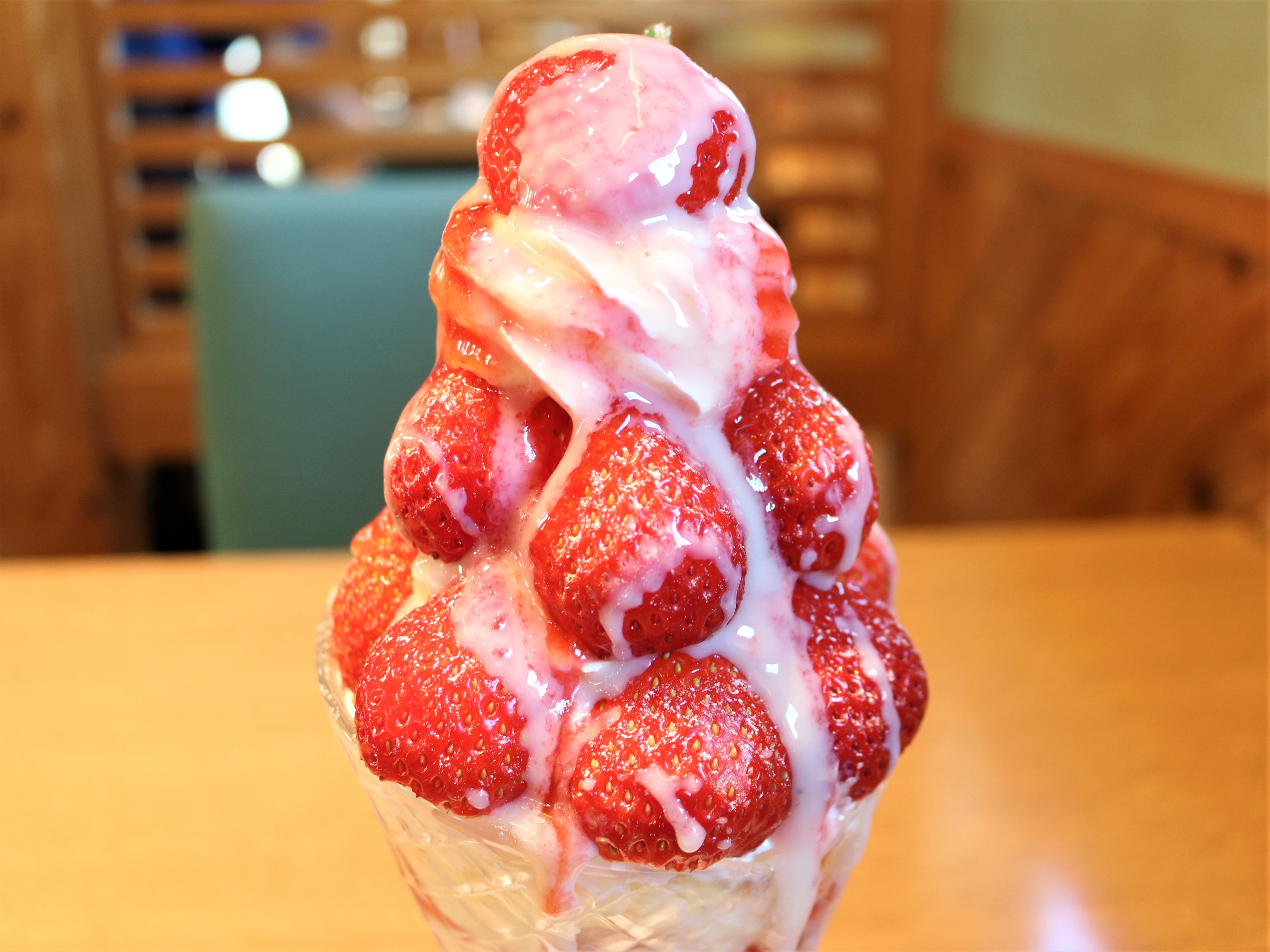 実はパフェに乗っているいちごも大きいんです。