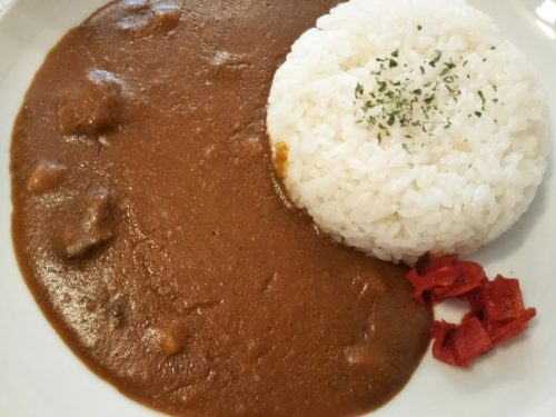 福神漬けは甘く感じますが、そのあと白御飯だけを食べても、なぜか白御飯だけのはずなのに白御飯が辛く感じるという…そんな不思議な味のカレーに、