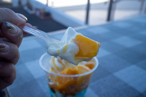 お店の方のオススメはソフトクリームから下のヨーグルトまで全部混ぜ混ぜして食べるとのこと。