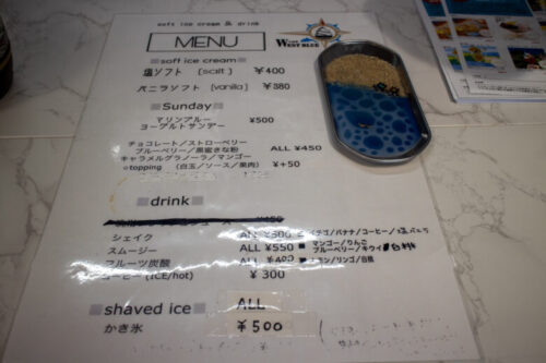 こちらCafe West Blueも対象店舗となっており、このマリンブルーヨーグルトサンデー(500円)を購入するとスタンプがひとつ貯まります。
