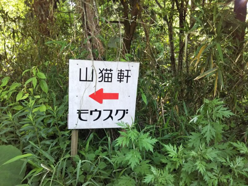 こちらの看板が見えてきました!!(よかった、モウスグ…。それにしても、本当に引き返せないのね…)
