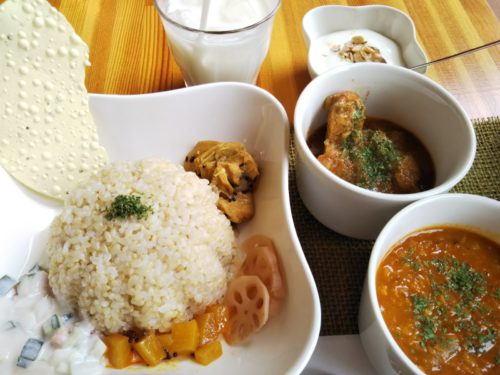 これでもかというほどレンズ豆がゴロゴロと入っているのですが、柔らかいペースト状になってて、口の中でとろける感じの優しい豆の甘さが印象的な南インド風のカレーです。野菜はできる限り熊本産なのだとか。
