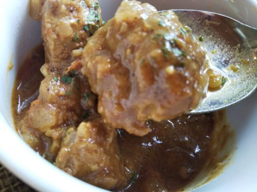 この日のお肉カレーは、こちらの「ポークビンダルー」