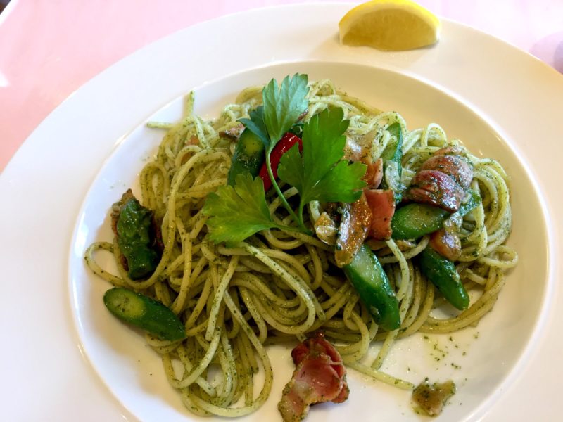今回は、スイートバジルのペペロンチーノのグリーンアスパラをオーダーしました。