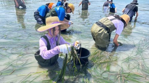 【熊本・上天草市】上天草市の小さな島、維和島の海で海藻にまみれてきた。