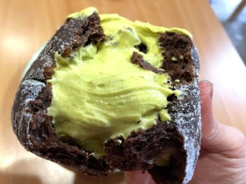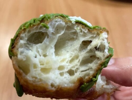 こちらは抹茶のドーナツですが、外はカリッとしているのに、中はエアリーでふわふわもっちり!