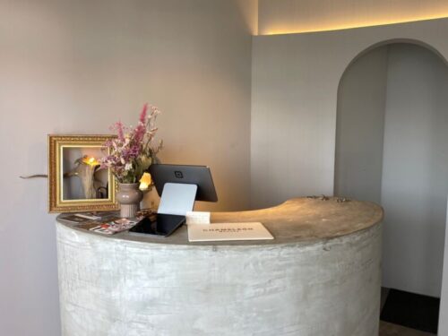 お店の中はというと、左側におしゃれなレジカウンターがあり、奥に厨房があります。
