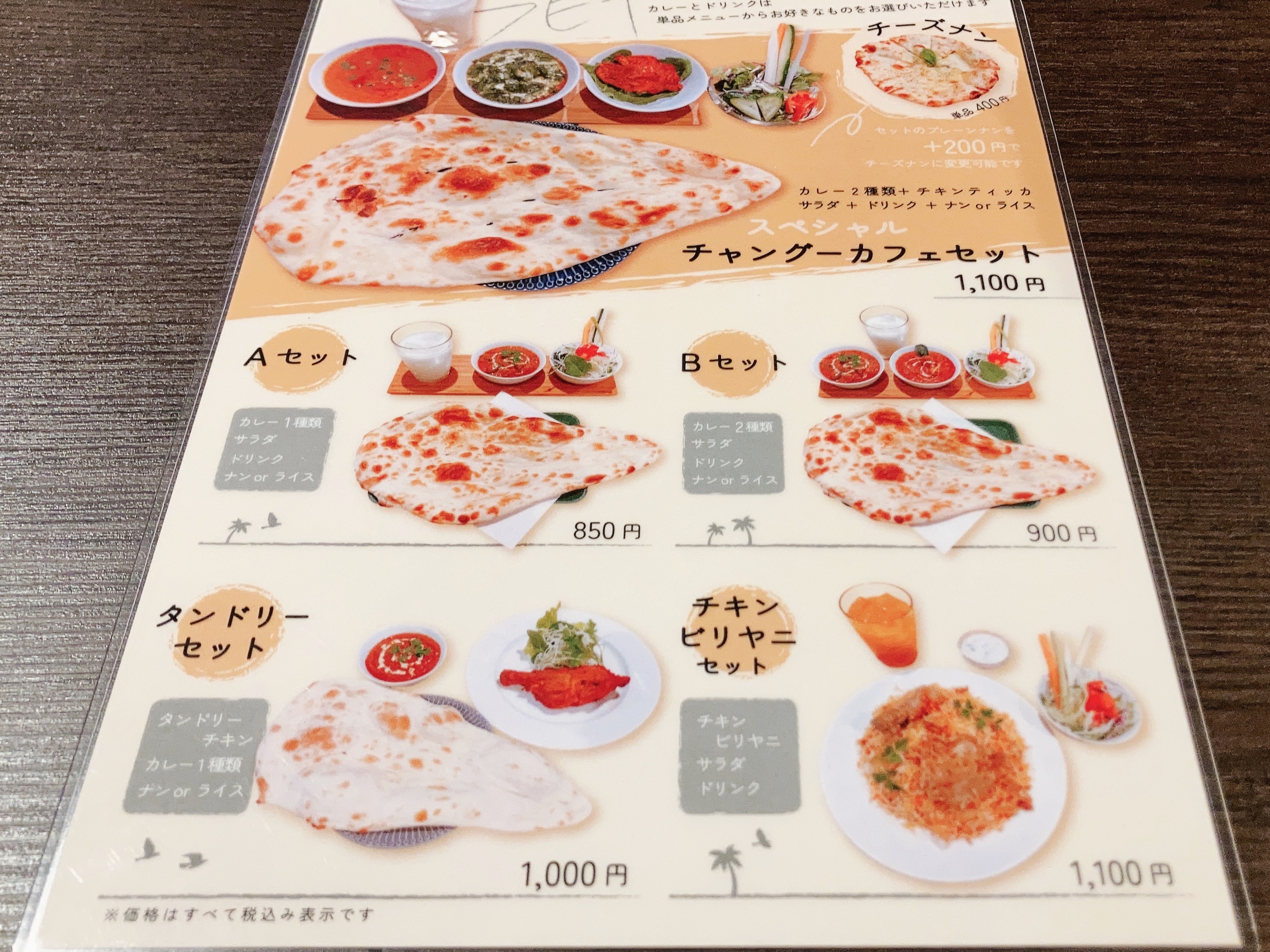 こちらがランチメニュー。カレーとナンを愉しめるセットに、ビリヤニもあります。