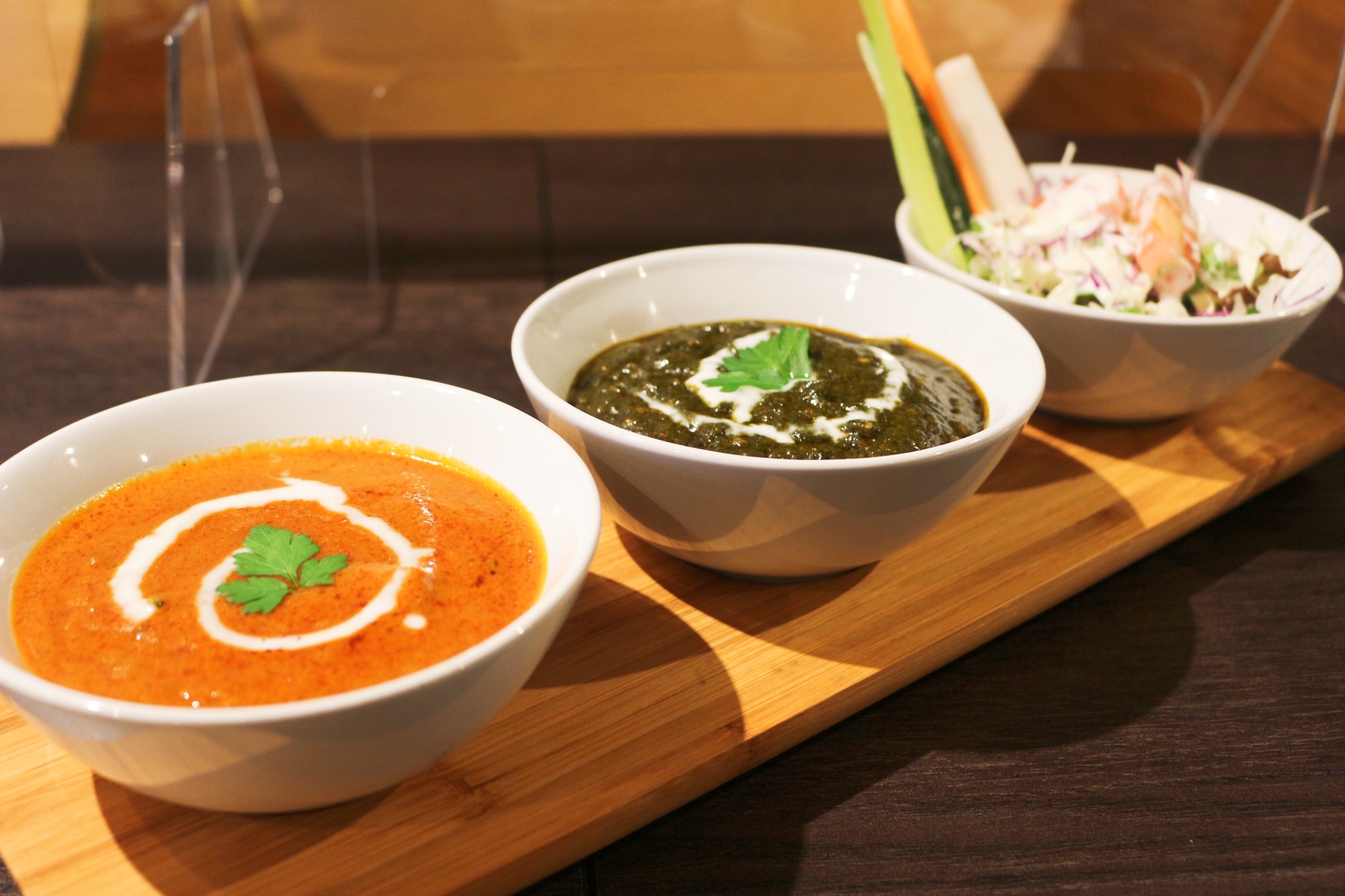 カレーがやってきました!私はBセットで、カレーはチキンカレーとほうれん草チキンカレーをチョイス。