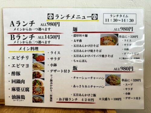 ランチメニューが2パターン、Aがメイン1品、Bは2品選べます。