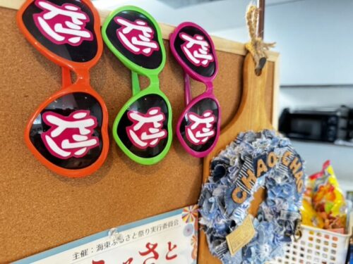 オープン時にお友達などから、贈られた手作り「炒炒グッズ」が飾ってありました。