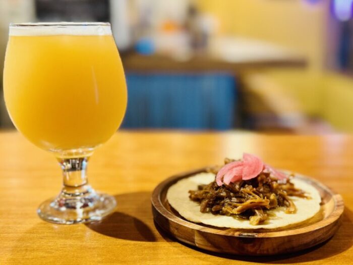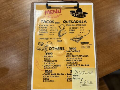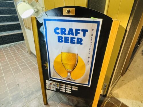 「タコスとクラフトビールあります」の、輝くポスターに出会いました。クラフトビールの文字に心臓がトクン!