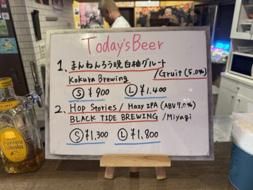 本日のビールはこちら。メニューにある「タップビール」とはこちらの「本日のビール」の事で、樽から直で注がれる生ビールの事です。