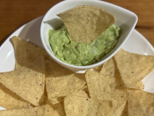 ワカモレとはアボカドを潰してクリーム状にしたメキシコ料理で、トルティーヤチップスと共に登場。トウモロコシの香ばしい風味と、さわやかさの中にもコクがあるワカモレが絶品で、一人で休憩なくバクバク食べてしまいました。