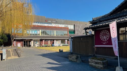 趣のある「温泉プラザ山鹿」の看板の隣に、可愛らしいお店!