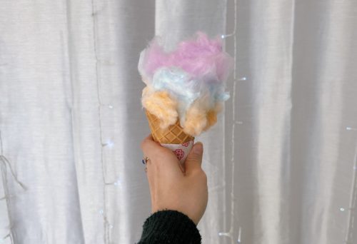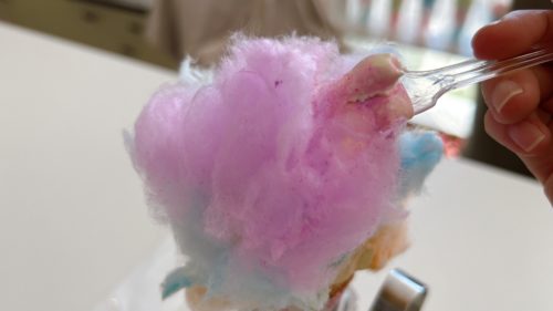 わたあめのカラフルがソフトクリームに移っていて食べながらも楽しい!