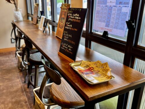 テーブル3卓とカウンターで構成された、オープンではあるものの席に着くとパーソナルな雰囲気がなぜか漂う不思議な作り。