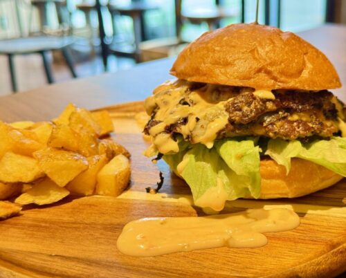 スマッシュとは、 熱した鉄板の上にパティ用の肉を置き、強く押しつぶしながら焼き上げるのが特徴で、カリッとした食感にぎゅっと詰め込まれた肉汁と肉感が、噛むと一気に放出される焼き方。
